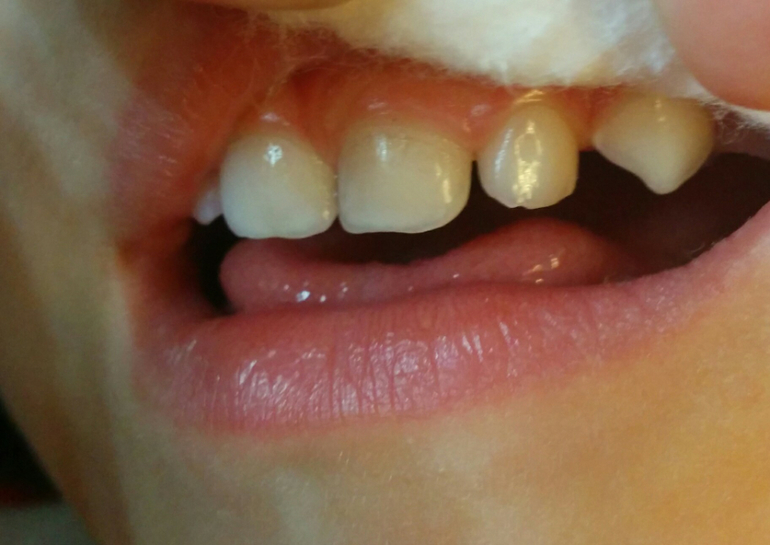 Здравствуйте.Вас смущает второй резец? Выемка на нем?Это участок гипоплазии. Недоразвития эмали. При тщательном уходе ничего страшного не произойдет.