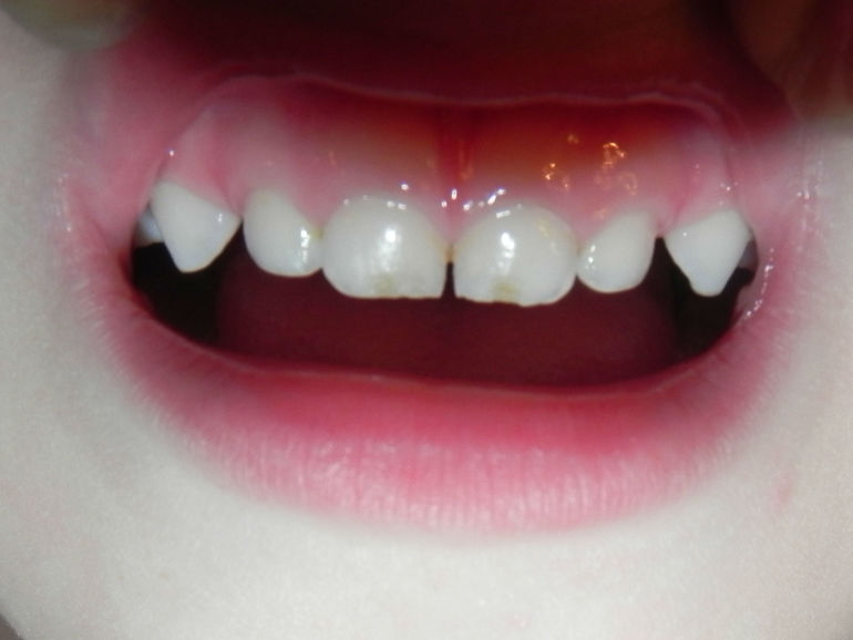 Посмотрите, пожалуйста, на наши зубки. На двух передних съедена эмаль, с внутренней стороны все чисто. Нам предложили пройти курс фторирования (5 нанесений с перерывами 7дней), на первом мы уже были....увидела вашу статью про фторирование и теперь не знаю есть смысл продолжать?