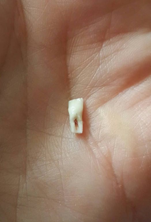 Сегодня разглядывала выдернутый вчера зубик, сравнивала с фото в интернете, обнаружила, что самый низ корня отломлен и остался в челюсти.