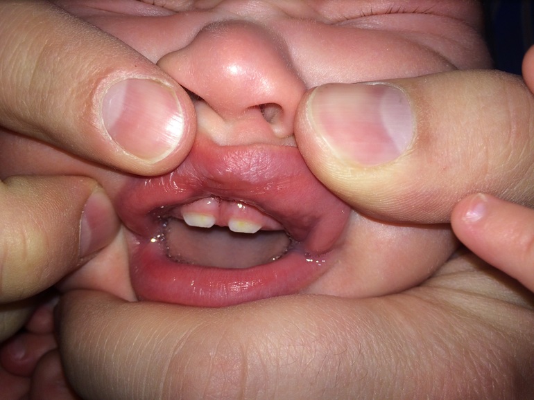 Моему сынуле 10 месяцев. Месяц назад вылезли верхние зубки и когда они опустились ниже я заметила желтые пятнышки. Фото не самого лучшего качества, если нужно я попробую переделать.