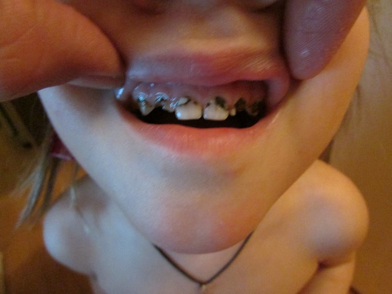 Здравствуйте.В данном случае ( учитывая возраст и тяжесть ситуации ) стоит рассмотреть вариант лечения зубов с Севораном.На лечение 6 ти передних зубов потребуется около 1,30 — 1,45 мин ( зубы можно вылечить все за один раз)Стоимость лечения около 55-60 тыс за все 6 зубов.