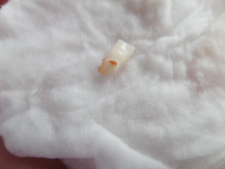 Добрый вечер. Ситуация такая- 3 дня назад дочь пожаловалась, что открывая бутылочку водички она расшатала зубик. Ей 5,7 лет. Сходили ко врачу, она сказала что им пора уже шататься, только бутылочкой она ускорила процесс.Удалять не стали, я решила что сам выпадет.Сегодня он выпал, но форма мне кажется не ровной. Боюсь, что он сломан и кусочек остался в десне. И еще увидела , что позади растет новый зубик! Подскажите бежать ли к стоматологу?Спасибо заранее.