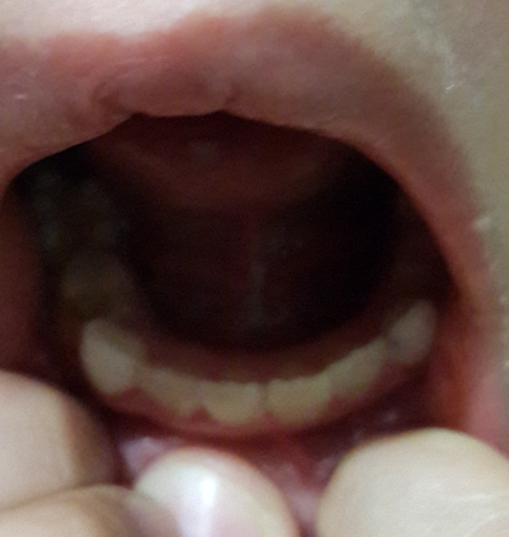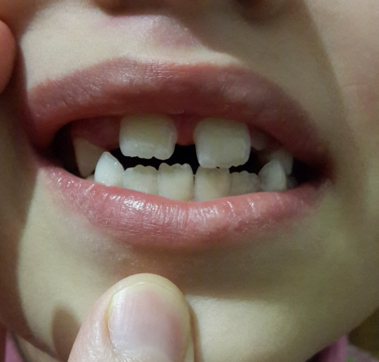 Дочке ровно 7 лет. По мере прорезывания молочных зубов, они покрывались меловыми пятнами, затем кариес, свищи, удаление. Итого, к 4 годикам были удалены верхние: 2 четверки, 2 единички и одна двойка.
