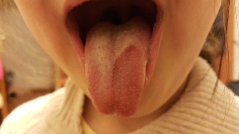 здравствуйте. дочке 4 года. периодически на языке появляются такие потертости. преимуществего в одном месте. что это может быть? фото прилагаю