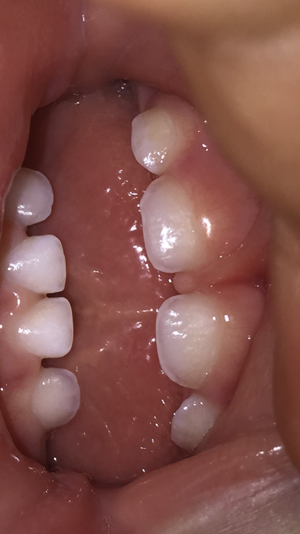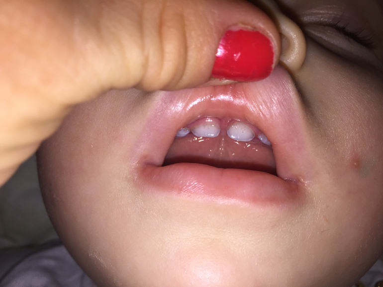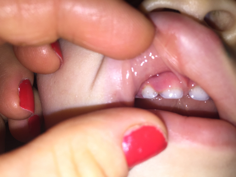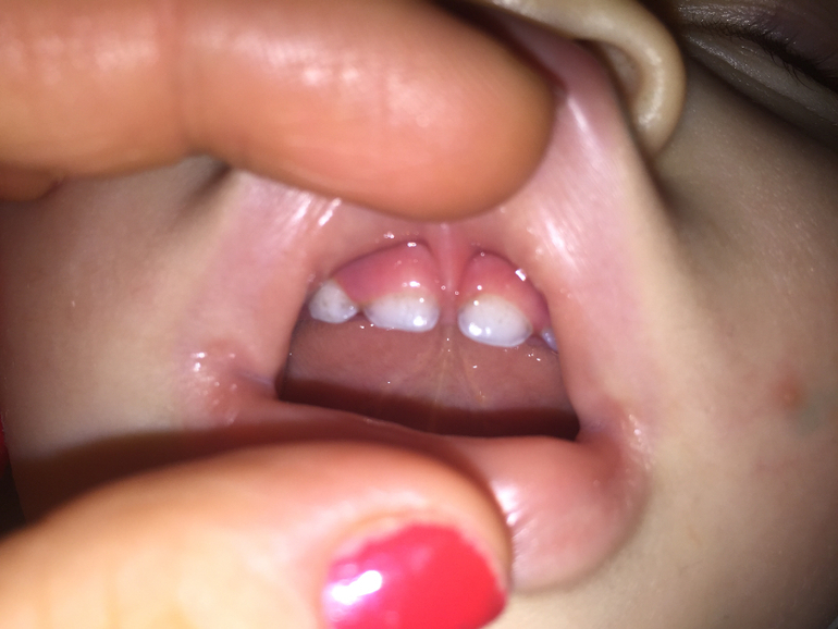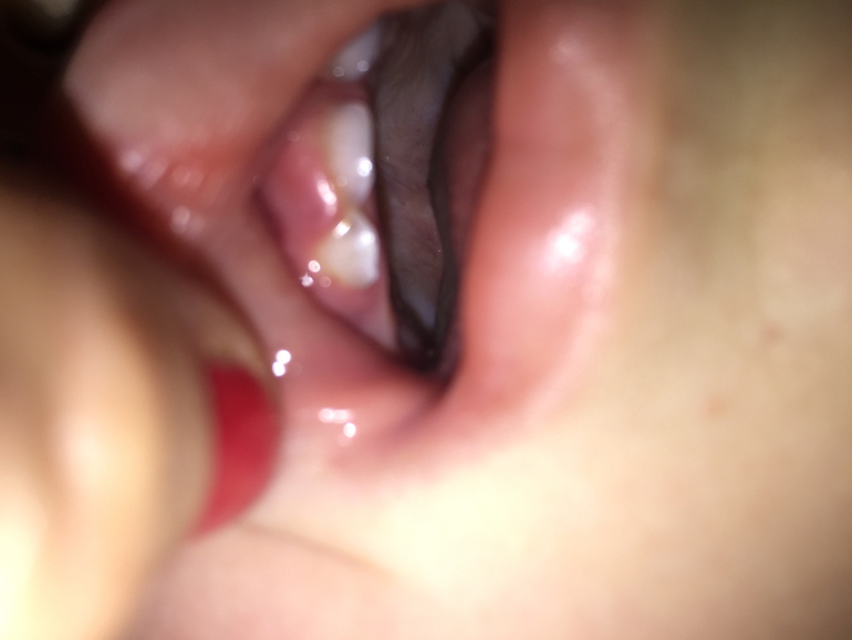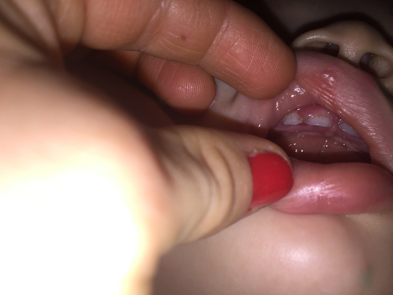 Ещё доктор сказал , что верхние не вылезли полностью , что дочь не даёт им вылезти , так как часто смыкает зубки . Верхние с нижними