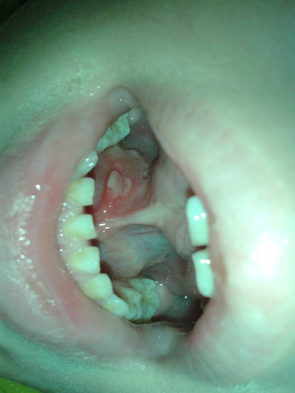 Зачем к хирургу тогда? Он проконсультирует и обработает данное место. И так же даст консультацию по короткой уздечки языка, т.к. занятие с логопедом не принесут желаемого результата. Уздечка короткая и массивная. И ее присутствие будет портить стоматологическую картину в будущем ( может сказаться на формирование прикуса, на оголение шеек нижних центральных резцов...)