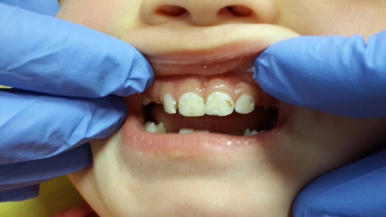 Здравствуйте! У дочки (1год 6 месяцев) начался кариес, развился за 1-2 месяца. Я в шоке. Ходили к стоматологу, провели фторирование. Сказали мазать гелем специальным дорогущим. Мажем. Чистить зубки после каждой еды не дает, приходится обходиться тем что сама чистит как-то щеткой. Такое ощущение что дырки на зубах со временем темнеют. Не могу понять в чем может быть причина такого ужаса. У старшей при таком же режиме ухода все было ок. Бутылки не сосем, ГВ.