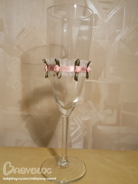 Я начала делать свадебные украшения-свадебные бокалы и свечи.