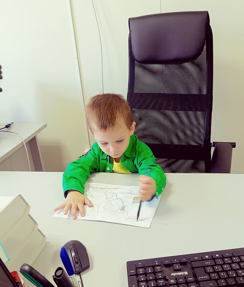 Моя работа (рассказы о работе)Ну что, сопливим потихоньку, в среду к врачу. А у меня отчёты. Давно сынок хотел к маме на стройку)) еле увела домой😂 порисовал, раскулачил настольный органайзер, проверил таблицы, сходил погулять рядом с площадкой, с прорабами руки жал, попил из кулера, съел яблоко, собрал кучку щебёнки у входа в администрацию. Весь день пахал)) сказал, ещё пойду🙈