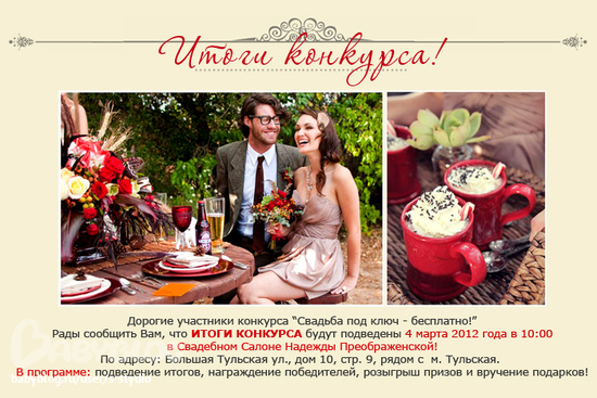 Рады сообщить Вам, что ИТОГИ КОНКУРСА будут подведены 4 марта 2012 года в 10:00