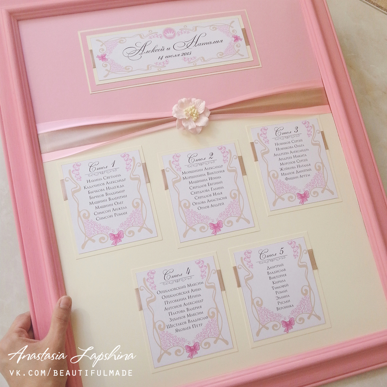 Рамки я крашу сама в цвет свадьбы. Очень нравится использовать различные цветные рамочки, надоели черно-белые.