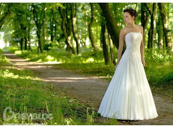 К сожалению, не могу. :-) Я публичная личность, и поэтому мне не хотелось бы до поры до времени разбрасываться своими свадебными фотографиями в соц.сетях. Вдруг потом что-нибудь "всплывет" там, где я не хочу...))) Поэтому выложила только эту безобидную фотографию. Могу словами!!! Платье сверху корсетное, низ - пышная юбка. В целом в стиле 60-х. Обычные туфельки-лодочки на каблуке 7 см. Прическа - распущенные локоны, но немного присобранные около ушек...