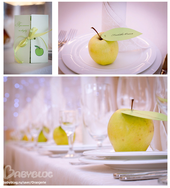 Подписали всем места, кто где сидит, на карточках типа визиток, в тарелки положили.