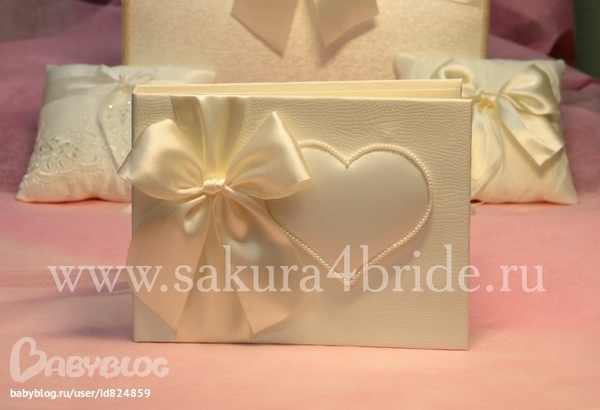 Размер:17х22 см Описание: - драпировка: атлас, шелк - декор: сердце из объемных атласных (шелковых) цветов, жемчужных бусин, бант из атласной ленты - цвет: в ассортименте (сочетание цветов) Комплектация: Страницы книги для пожеланий на книжном переплете белого или розового цвета 30 шт. Дополнительно: Оформленная в том же стиле что и альбом ручка для пожеланий. Индивидуальный дизайн страниц гостевого альбома. Печать на главной странице даты свадьбы, имён жениха и невесты. Фольгирование рисунка и надписей первой страницы гостевой книги.