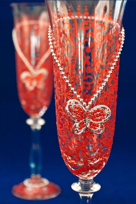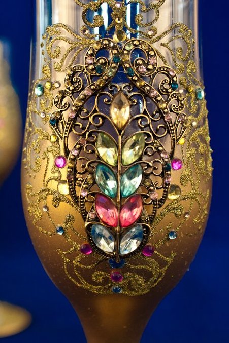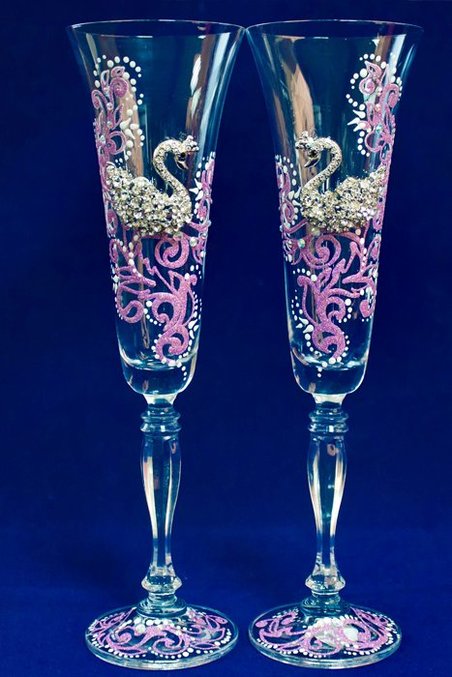 Отличный подарок на годовщину свадьбы - пара бокалов из чешского стекла Bohemia с ручной росписью, украшенными стразами.