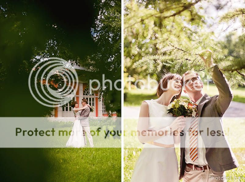 А зачем жениху классический костюм? :) Ведь столько есть разных вариантов! Вот одни из моих молодожёнов. Платье сшито на заказ, довольно классическое, а жениху с серьгой в ухе подобраны некостюмные брюки и пиджак, галстук в цвет свадьбы. Результат мне лично очень понравился.