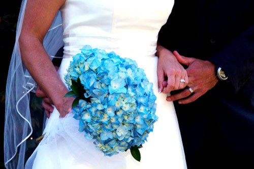 Я зимой участвовала в подготовке свадьбы своей подружки и по поводу всех аксессуаров, в том числе и букетов для невесты мы обращались в специальное агентство. Если бы надо было два букета, то наверное, нам бы сказали. А в итоге мы выбрали вот такой шикарный голубой букет для невесты, который потом оказался в руках у 10-летней девочки.