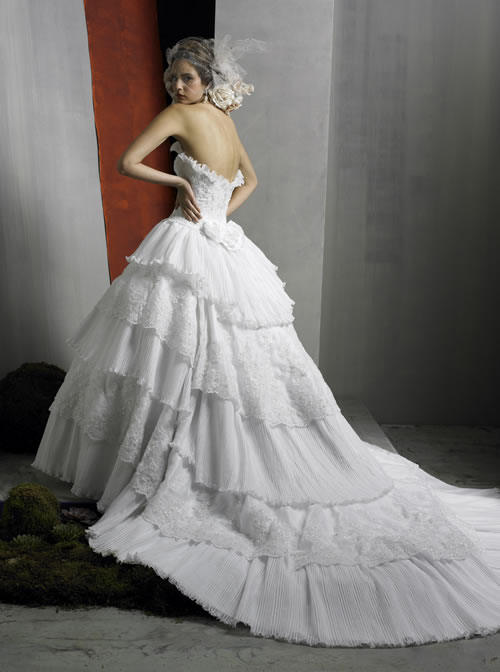 Выглядит очень дорого и богато, белоснежное с длинным шлефом, который при необходимости пристегивается.