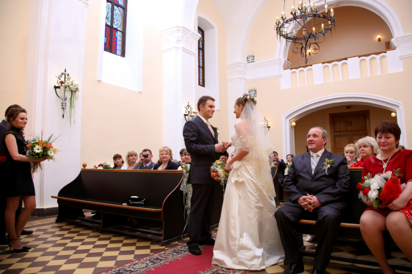 мы поехали на неофициальную церемонию, но самую запоминающуюся и красивую, которая проходила в органном зале (бывшая католическая церковь) Все, включая даже мужчин прослезились, под Аве-Марию мой папа вел меня к моему уже официально мужу (т.к. в ЗАГС мы уже по бырому скатались)))))))))))) Очень волнительный момент клятвы молодоженов, я конечно все на свете забыла, мой жених-муж плакал и клялся в вечной любви, после церемонии был небольшой концерт органной музыки, я на долго это запомню.
