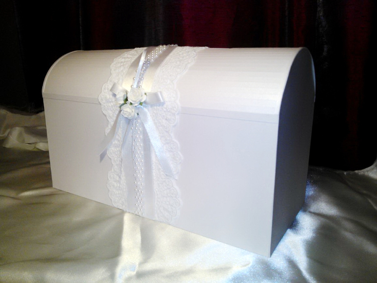 Шикарно получилось! Особенно свечка) сейчас они таких денег стоят, что рука не поднимается, чтобы купить, т.к. их много нужно. А сундук для чего? При входе гости деньги кладут или как?
