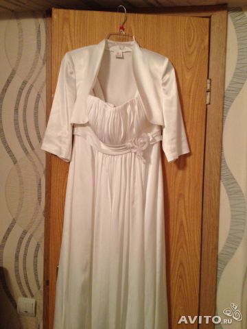 Продам свадебное белое платье. Б\У. Без фаты. С болеро. Имеет 3 юбки, скрадывает все неровности фигуры, в том числе живот. Можно убрать лямки.