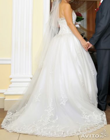 Продам красивое свадебное платье , умеренно пышное, с небольшим шлейфом. б/у один день. после евро химчистки. в химчистке сказали, что давно не видели, чтобы отделка свадебного платья была не приклеена, а пришита! ни одна бусинка не отвалилась! очень качественно сделано. создает красивый образ классической невесты!