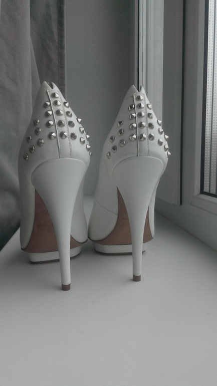 Продаю оригинальные туфли бренда Alexander MQueen. Белые. Натуральная кожа. Каблук 13 см. Узнаваемая модель с заклепками.Были одеты на 2 часа для фотосессии(см. состояние подошвы на фото)
