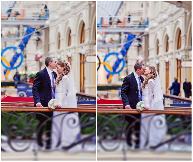В Гуме в предверие Олимпиады 2014 было очень красиво...я ни разу не пожалела, что выбрали именно это место. Потом бегом через красную площадь и в ЗАГС ...В ЗАГСЕ - Измайловский Кремль тоже фотографировались...по отдельности и с гостями..правда на час запись пришлось перенести...так как половина гостей поехали в Измайловский ЗАГС , а не в Измайловский Кремль))))) Но ничего...зато успели передохнуть и насладиться друг другом)