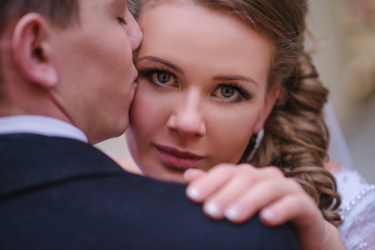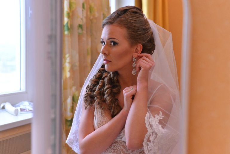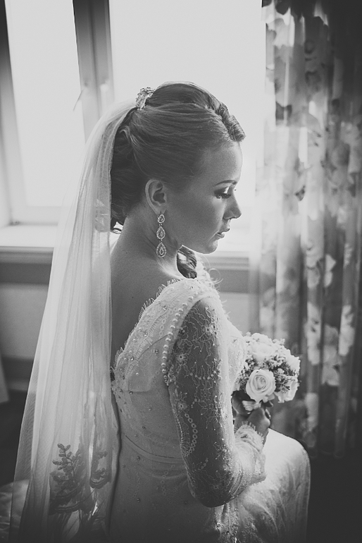 Когда жених зашел в комнату, я стояла около окна под фатой...незабываемый момент, когда ты смотришь ему в глаза, а он восхищенно смотрит на тебя и поднимает фату...это наверно один из тех моментов, которые помнишь всю жизнь))))
