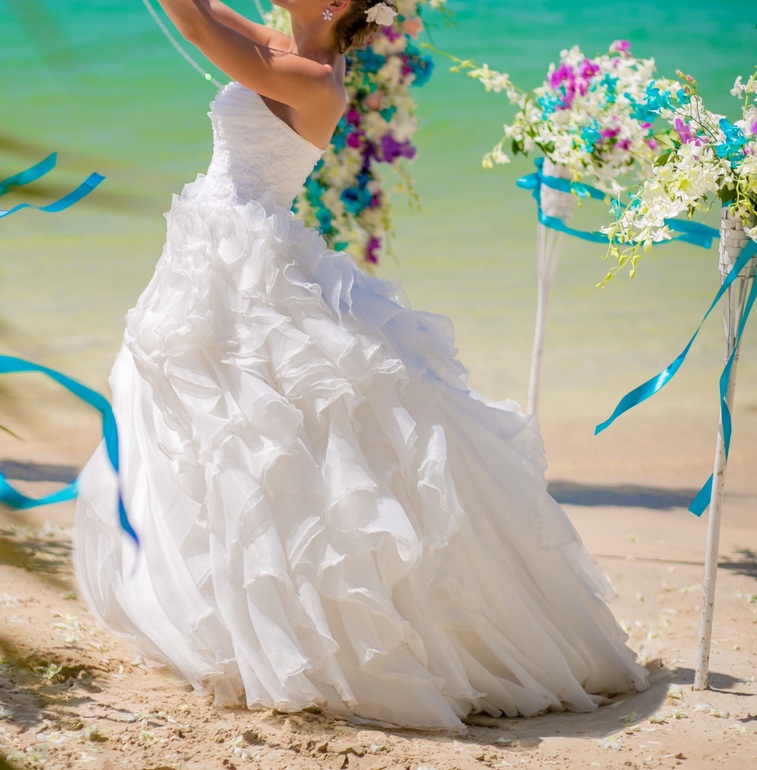 Шикарное свадебное платье молочного цвета от дизайнера Натальи Романовой. Коллекция "Шедевр" 2011года. Размер на платье 40 (xs), в жизни я ношу 42-44, так что думаю подойдёт на все три размера (40-44). Платье не подшивала, подойдёт на любой рост до 175 см. Очень удобный корсет. Платье подойдёт как для празднования в ресторане так и для пляжной церемонии.С платьем отдам подъюбник с одним кольцом. Покупала за 35 т.р. Одевала один раз на пляжную церемонию. Платье после химчистки. 23000 рублей.возможен торг. 89163694944 Виктория
