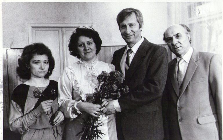 На фото мои родители, мой дедушка(свидетель) и свидетельница-мамина подруга.