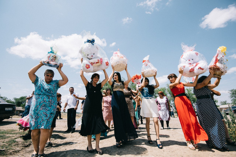 У нас (в Ставропольском крае) было так же, мое детство проходило с бабушкой т.к я болела часто и в сад решили не водить, мы практически каждый день то на свадьбе готовить, по покойника "обмывать", то проведывать болящих, то на смотрины детей, вообще есть что вспомнить) Помню как к свадьбе готовились, за молодыми ковер вешали, плакаты самодельные, и горшок с мелочью били, а дети собирали. Одно время цыгане периодически кочевали, останавливались в шатрах, повозки, лошади и костер, сейчас скучаю по тем временам, видимо поэтому "Курдская свадьба привлекла внимание")