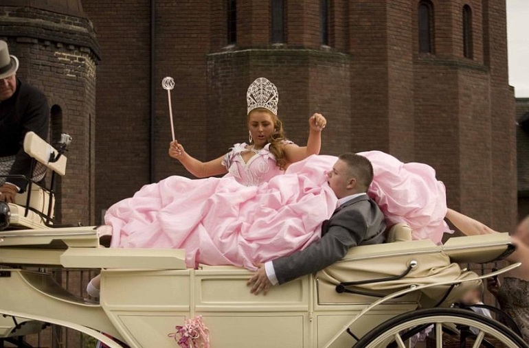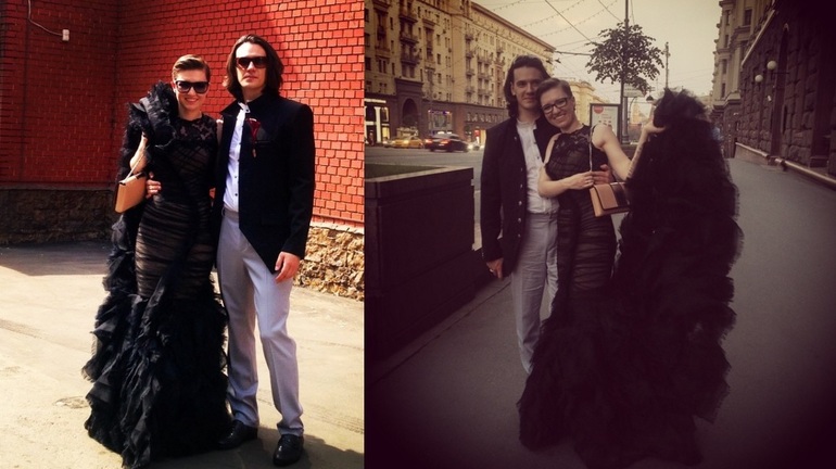 У меня было черное платье с длинным шлейфом. Никогда не понимала белые платья...