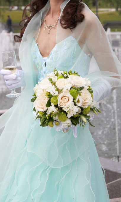 У меня было бледно-бирюзовое платье. Тут вот фото, чтобы иметь представление о цвете, фотку полностью не хочу вставлять.