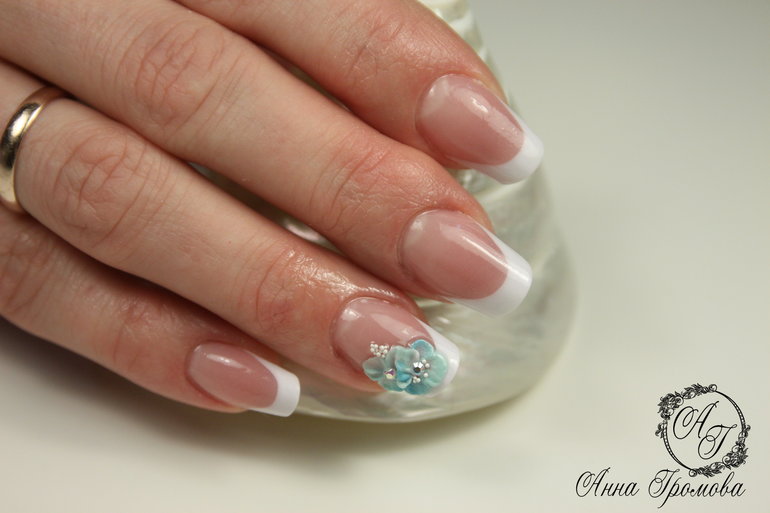 И еще немного нежности , классики и милоты:) Акриловый белый френч, лепка и стразы Сваровски.