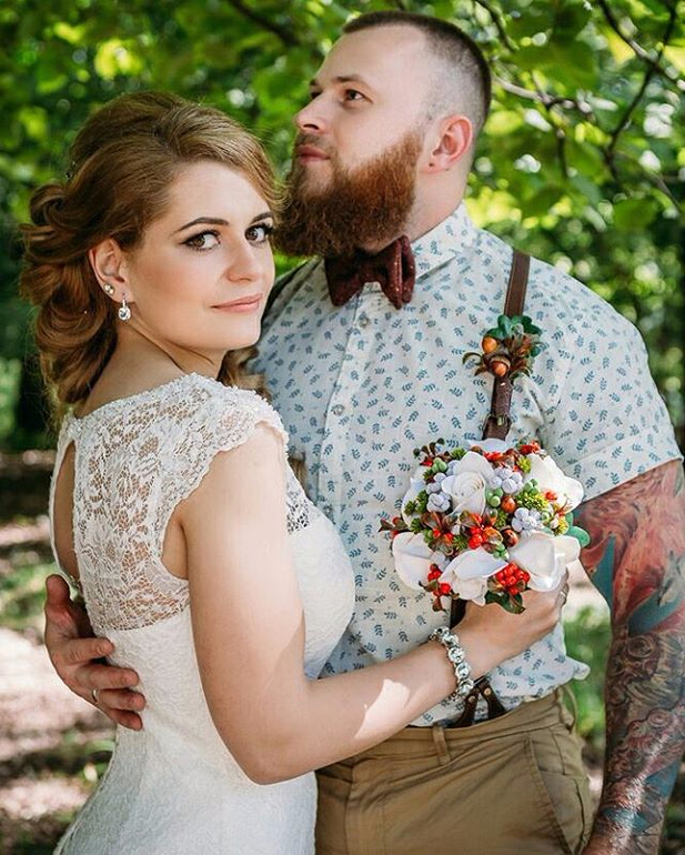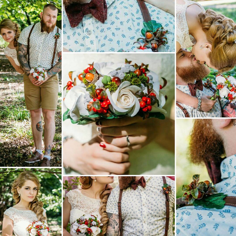 Прошлым летом я делала букет и бутоньерку как раз для такой свадьбы. Красивая пара, красивая свадьба, красивые фотографии :)