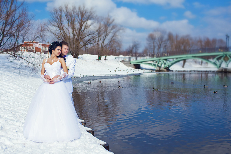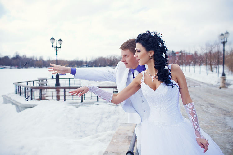 А эта невеста позирует когда сзади специально на неё летит снег который сдували с дорожек работники усадьбы. Свежо , невесты они такие, любовь, адреналин:).