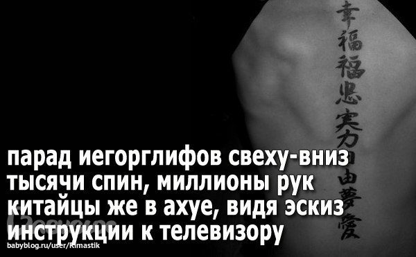 Вопросы и советыДевочки, только без обид... Ничего личного, но вопрос следующий... Когда вы хотите сделать тату на арабском, китайском, японском, тайском и т.д., где вы берете перевод? Я иногда смотрю фото и прошу мужа перевести, и мы ахреневаем от того, что написано! А предполагаемый перевод, озвученный клиенту, далек от истины. Так вот к чему я ...