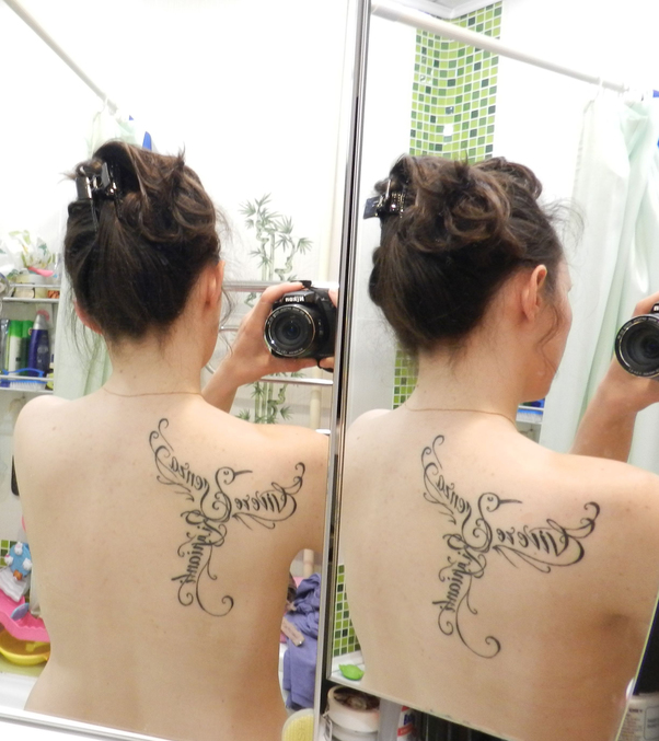 ПоказываемВсегда хотела тату, была идея, может еще ее воплощу, но как увидела эту надпись поняла моё! Сразу позвонила мастеру и записалась. Но просто надпись не хотелось. В последний день с мужем придумали в виде птицы и уже в студии мастер, он молодец конечно, улучшил многократно первоначальный замысел, и вот что получилось: