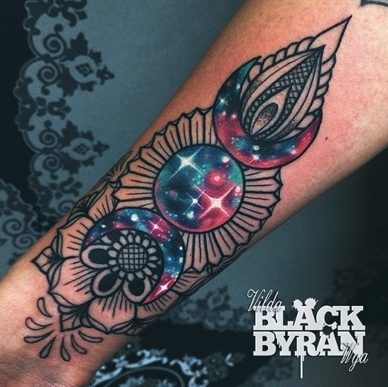 Трэш-полька, мне кажется, это больше мужской стиль.Не делайте, пожалуйста, сов и ловцов — замылено до невозможности уже. Я от лопатки до локтя бью сейчас, чтобы если что, то можно было летом рубашкой с подвернутыми рукавами прикрыть.