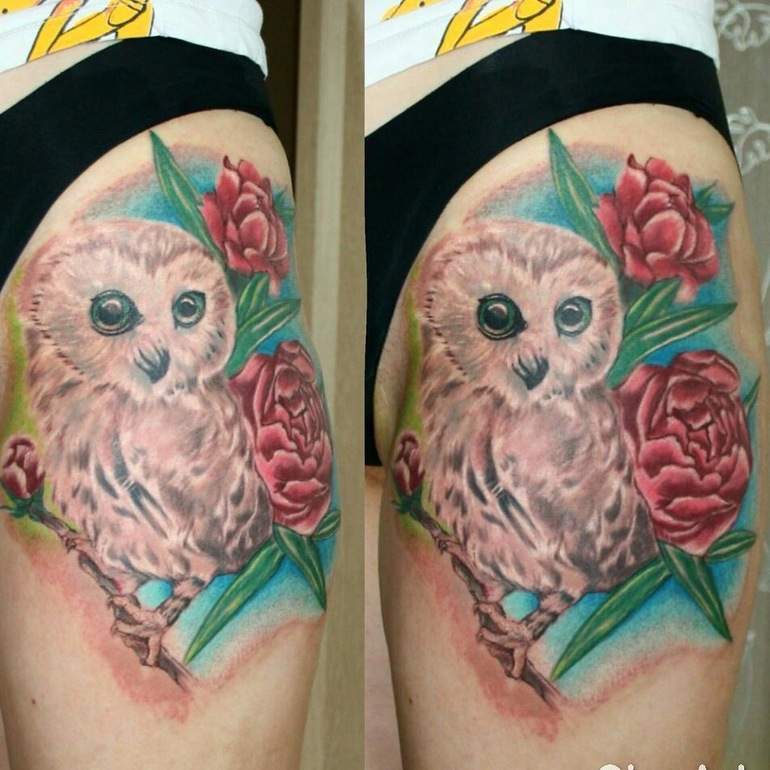 Ну это и не Ваше тату) мне нравятся совы, очень люблю пионы. Вот и сложилось так!