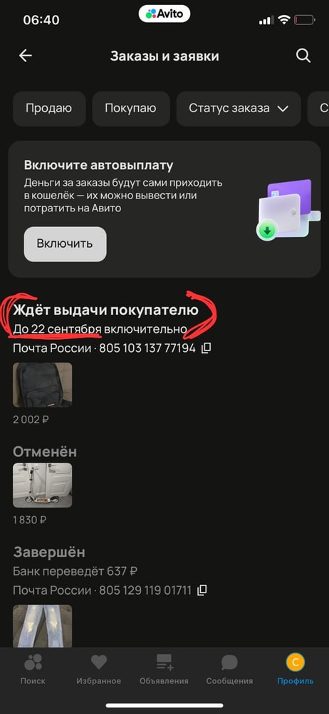 Продавала через Авито рюкзак который покупатель не забрал. Оформила возврат 20.09.2025 и с тех пор он утерян.
