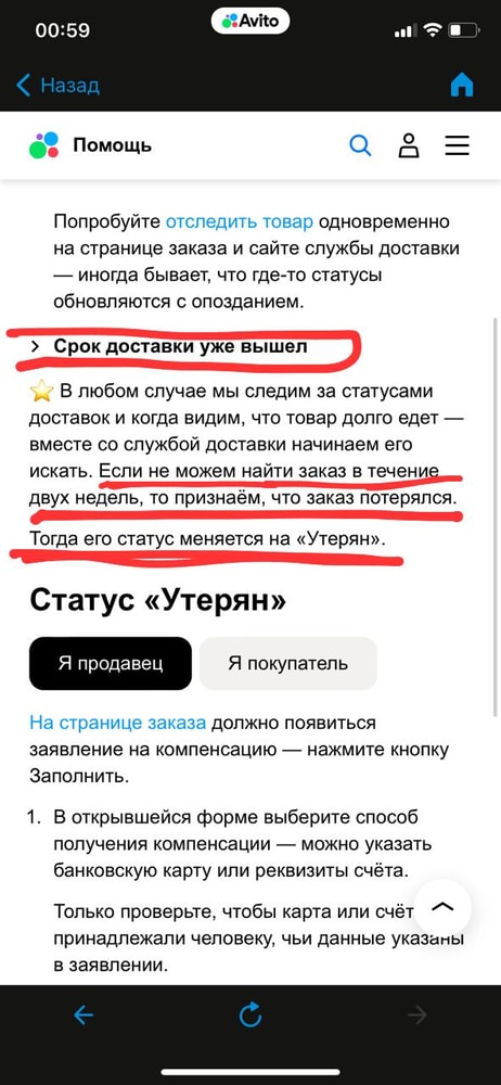 Авито потерял заказ и не возвращает деньги за утерю