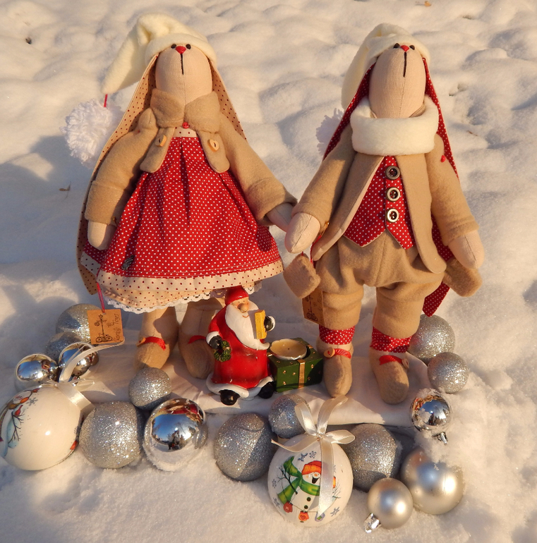 а вот и мои новогодние зайки) делала в прошлом году под заказ
