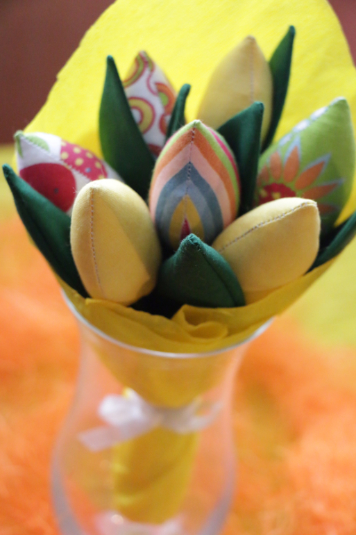Наступила весна, на улице слякоть и грязь, а так уже хочется молодых зеленых листочков, теплого солнышка. По-этому решила сшить милые тюльпанчики