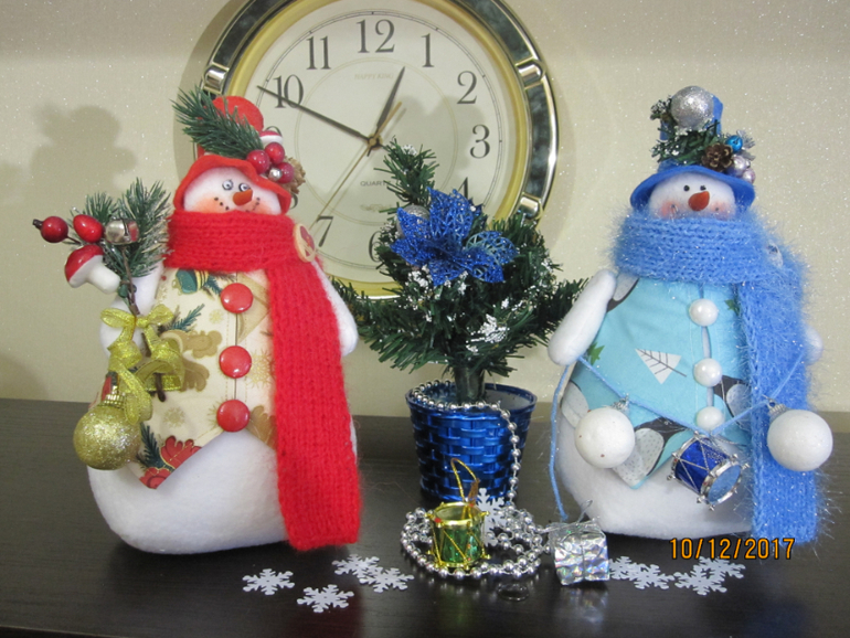 Мои снеговички-весельчаки. Все они появились на свет перед Новым годом и уже давно разъехались к своим новым хозяевам в качестве новогодних подарков.