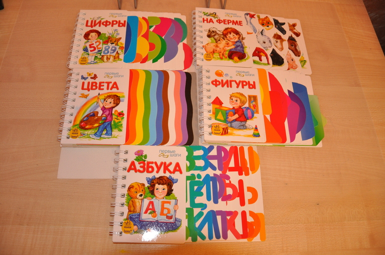 Книжки яркие,качественные, странички не гнутся, очень познавательные. В книге описывается каждая цифра, буква, фигура.