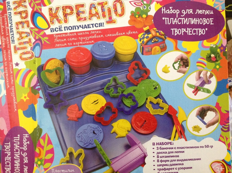 Митюша очень любит лепить, вернее возиться с пластилином: делать колбаски и разрезать их ножом, леплю пока только я)) решила купить вот недорогой набор, покупала за 150 руб - Вот ссылка