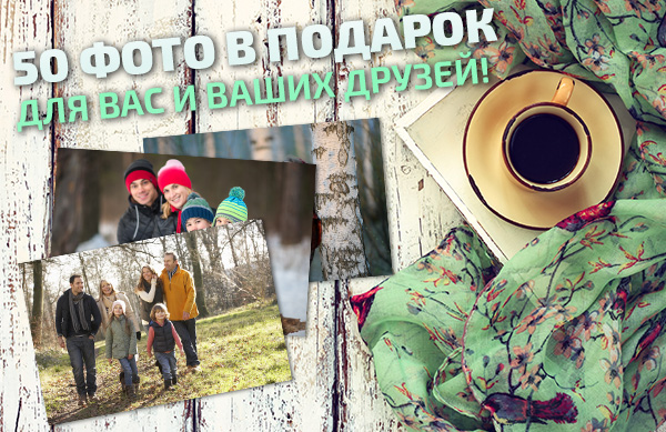 При оформлении заказа в поле «Промокод» введите: FOTOPRINTСтоимость 50 фотографий в заказе изменится