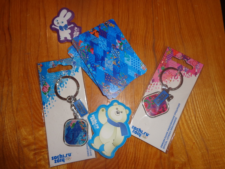 А это мамкины подарки)))) магниты, карты и брелки для меня и мужа сочи-2014. Почему бы и нет =) Брелки очень понравились)